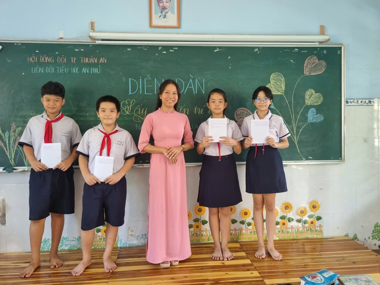 Vào ngày 15/03/2024 Liên đội trường Tiểu học An Phú đồng loạt thực hiện chương trình “ Lấy ý kiến trẻ em” trong toàn Liên đội và đại diện các chi đội khối lớp 5 làm mẫu, tổ chức tại các lớp học. Nhằm thu thập ý kiến, suy nghĩ và mong muốn của các em đội viên và học sinh cuả trường Tiểu học An Phú về các vấn đề liên quan như : học tập, sức khỏe, môi trường, tình bạn…. Thông qua chương trình này, các em có cơ hội được lắng nghe, chia sẻ và đóng góp ý kiến vào việc xây dựng vào môi trường học tập tốt hơn.