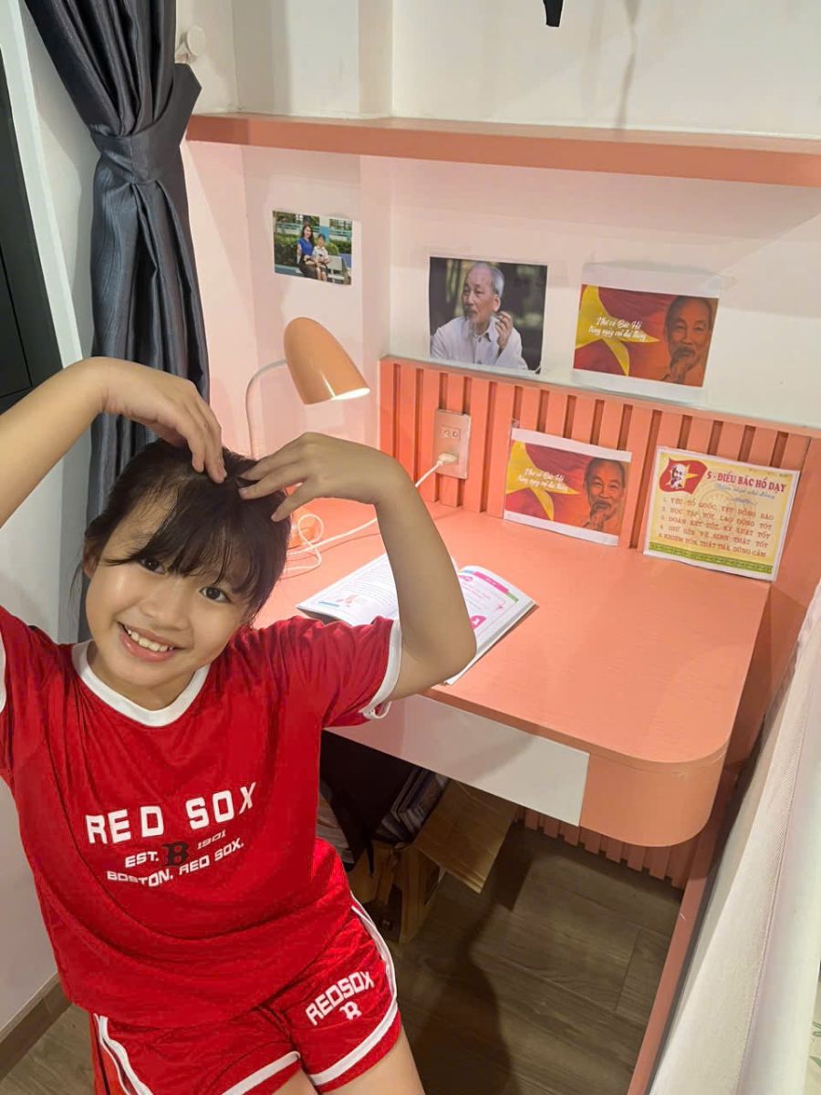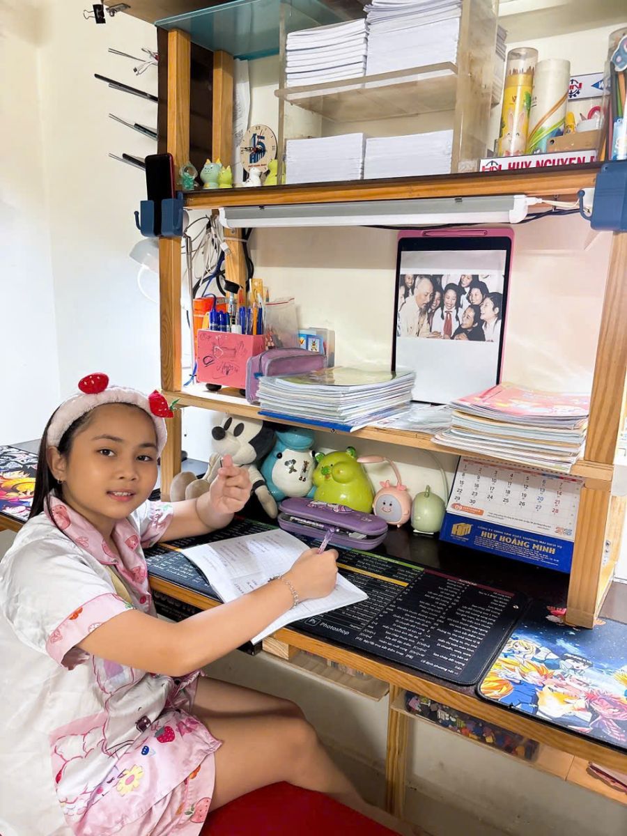 Không chỉ ở trường, phong trào còn được lan tỏa về từng gia đình. Mỗi học sinh cùng cha mẹ đã sắp xếp góc học tập tại nhà với ảnh Bác và những lời dạy giản dị mà sâu sắc. Những góc học tập ấy không chỉ là nơi học tập quen thuộc mà còn trở thành không gian giáo dục giàu ý nghĩa, nuôi dưỡng tình yêu thương và tinh thần rèn luyện của các em.