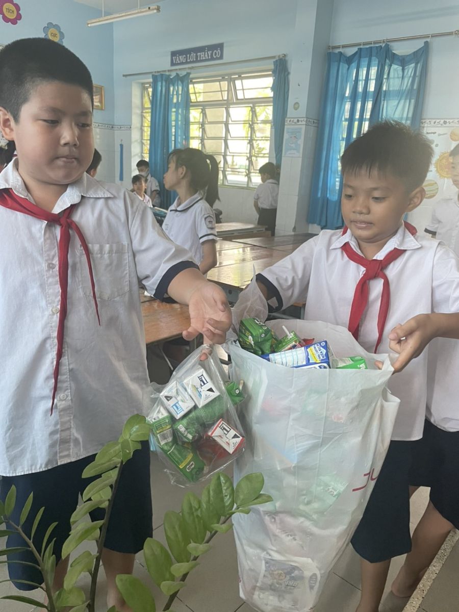 Liên đội luôn phát động phong trào thu gom vỏ sữa cho các bạn học sinh toàn trường trước khi nghỉ tết giáp thìn 2024. Các bạn đã biết cách xử lý vỏ hộp sữa sau khi tái chế.