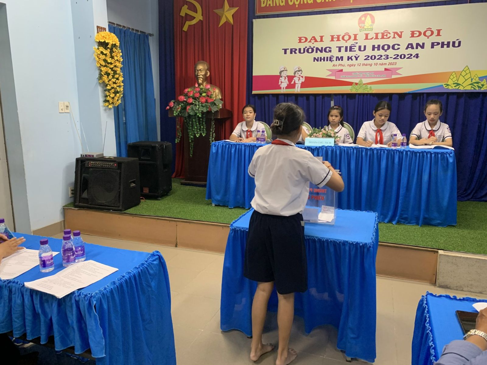 Liên đội TH AN PHÚ tổ chức đại hội Liên đội nhiệm kỳ 2023-2024 với sự có mặt của thầy La Tấn Phát - Phó Hiệu Trưởng trường TH AN PHÚ. Chị Dương Thị Kiều Oanh - Phó bí thư đoàn, chủ tịch Hội đồng Đội phường. Vào lúc 14 giờ chiều ngày 12 tháng 10 năm 2023 Liên đội trường Tiểu học An Phú đã long trọng tổ chức Đại hội Chi đội để bầu ra những em đội viên xuất sắc nhất là lực lượng nòng cốt của Chi Đội, nằm trong Ban chỉ huy chi đội và cử ra đại biểu chuẩn bị tham dự chương trình Đại hội Liên Đội sắp tới. Với mục đích phát triển đội viên, xây dựng liên đội vững mạnh đồng thời xây dựng môi trường học tập cho các em thiếu nhi vừa học vừa chơi và tham gia tốt các phong trào có đội ngũ đứng đầu để đảm bảo thực hiện tốt các hội thi và phong trào của Liên đội.